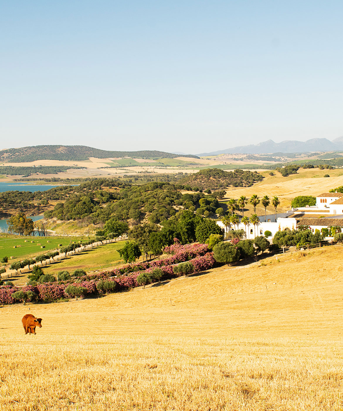 At the end of the Jerezana countryside and at the foot of the Sierra Gaditana bordering the Guadalcacín reservoir and skirts of the Alcornocales Natural Park, is Dehesa Fuente Ymbro. A unique and privileged environment that has a great natural diversity and a very favorable climate for the development of species and cultivation.